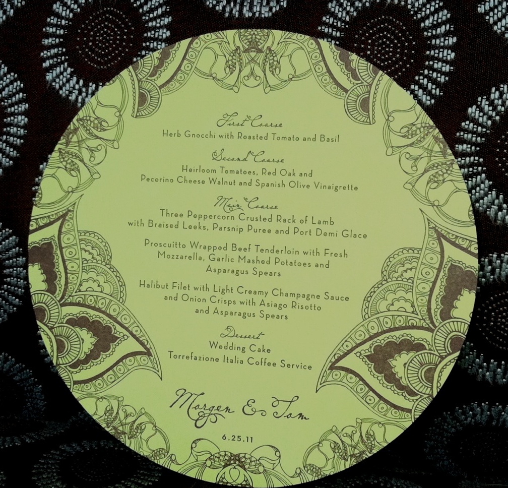 Have fun with your wedding accessories! That includes menus that can add your colors and style on to your dining tables. Not only do they communicate to your guests, they can also serve as a décor element. We especially love our circle menus from Spark Letterpress – they can sit on the charger or in lieu of a plate.